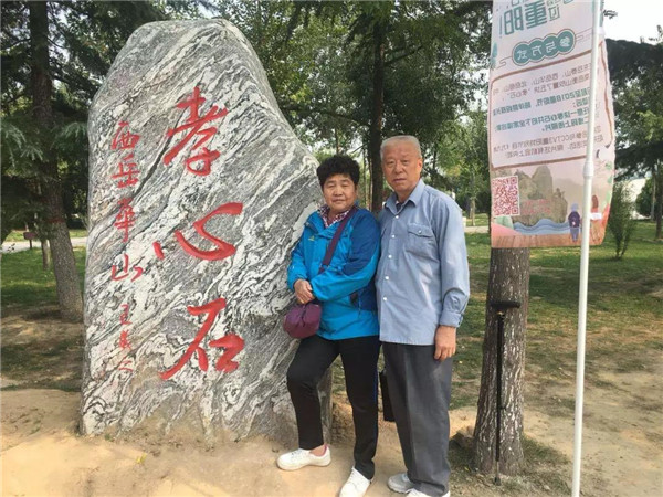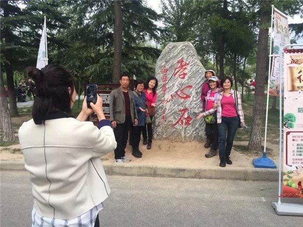 在節(jié)日的氛圍里,游客熱情高漲,爭先恐后地與“孝心石”合影留念,以此表達(dá)自己對父母的親切祝福。
