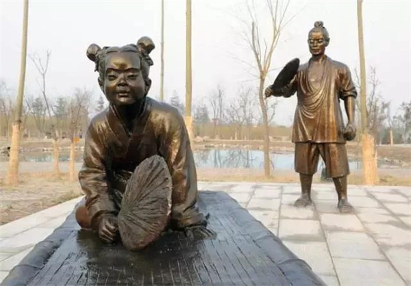 董永,相傳為東漢時期千乘人,年少喪母,因避兵亂遷居安陸。其后父親亡故,董永賣身至一富家為奴,換取喪葬費(fèi)用。上工路上,于槐蔭下遇一女子,自言無家可歸,二人結(jié)為夫婦。女子以一月時間織成三百匹錦緞,為董永抵債贖身,返家途中,行至槐蔭,女子告訴董永:自己是天帝之女,奉命幫助董永還債。言畢凌空而去。因此,槐蔭改名為孝感。