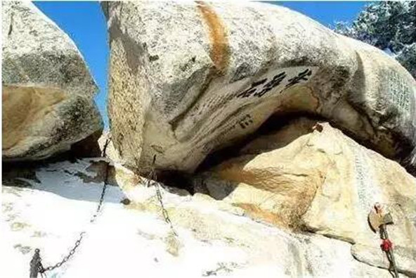 華山文化可謂博大精深,這些鐫刻在神山圣水之間的文字,他們是一個符號,更是一份歷史的活化石。有時雖寥寥幾筆,卻是一個時代的銘記,“智取華山”雖然只有四個字,但是它卻讓后人牢牢記住了在這座山上曾經發(fā)生的英雄故事。這四個字是劉吉堯2004年來的時候題的詞,劉吉堯是全國特級戰(zhàn)斗英雄,他在近90歲時還經常華山,這就是智取華山路離北峰最近的那一段路。