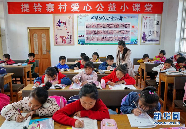 近日,河北省遷安市閆家店鄉(xiāng)提鈴寨村黨支部副書記李飛燕針對(duì)該村留守兒童放學(xué)后無人看護(hù)或者沒有人輔導(dǎo)作業(yè)的情況,在村委會(huì)辦起了一個(gè)“愛心公益小課堂”,讓孩子們來這里學(xué)習(xí),解決了外出務(wù)工家長(zhǎng)們的后顧之憂。新華社記者 楊世堯 攝