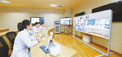 遠程會診實現了總院、縣分院、鄉(xiāng)鎮(zhèn)衛(wèi)生院、村衛(wèi)生室的診療連接,有效解決偏遠地區(qū)群眾看病遠、看病難問題。記者 黃靈燕 攝