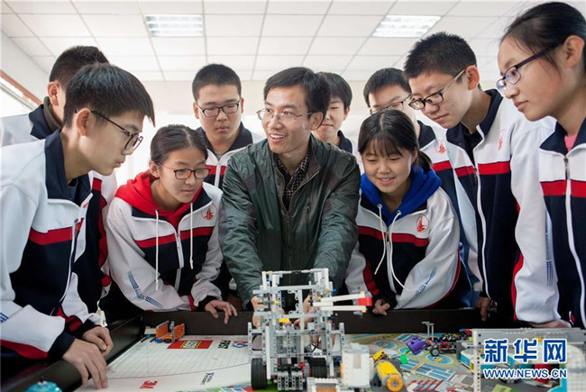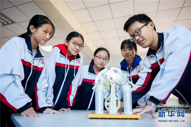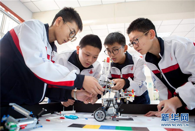 近年來(lái),河北武邑中學(xué)開設(shè)機(jī)器人、航模、科技實(shí)驗(yàn)等趣味科普課程,激發(fā)學(xué)生的創(chuàng)新創(chuàng)造意識(shí)和科學(xué)探索精神,讓學(xué)生近距離感受科技魅力。 新華社記者 朱旭東 攝