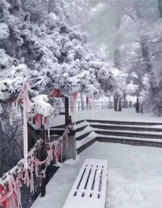 冬季的華山少了夏季的喧鬧,白雪與松檜、陽(yáng)光與山石就是它最美的景象。每年12月至次年3月是華山的雪季,而前兩天華山已經(jīng)提前下過(guò)雪了,整個(gè)山體被白雪覆蓋,樹(shù)木、巖石、道觀上都披上一層厚厚的棉衣。走進(jìn)華山仿佛是走進(jìn)了一個(gè)純白的圣潔之地,白色的花崗巖、白色的雪花、白色的樹(shù)木…… 在華山,白色也是如此的浪漫唯美。