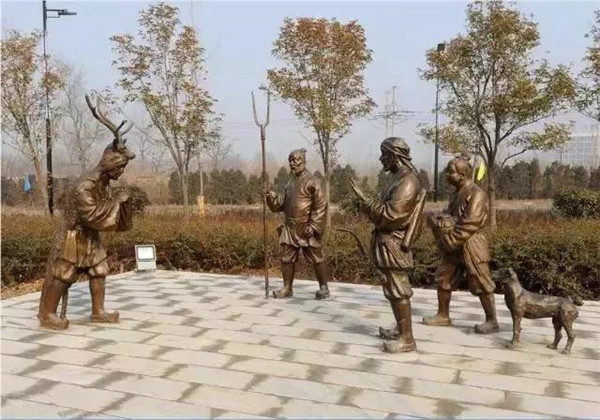 春秋時(shí)期的郯子,父母年老,患眼疾,需飲鹿乳療治。他便披鹿皮進(jìn)入深山,鉆進(jìn)鹿群中,擠取鹿乳,供奉雙親。一次取乳時(shí),看見獵人正要射殺一只麂鹿,郯子急忙掀起鹿皮現(xiàn)身出走,將擠取鹿乳為雙親醫(yī)病的實(shí)情告知獵人,獵人敬他孝順,以鹿乳相贈(zèng),護(hù)送他出山。
