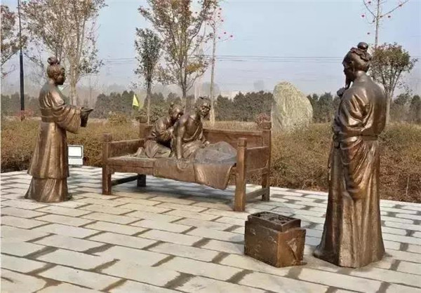 漢文帝劉恒,漢高祖第三子,為薄太后所生。高后八年(前180)即帝位。他以仁孝之名,聞?dòng)谔煜?,侍奉母親從不懈怠。母親臥病三年,他常常目不交睫,衣不解帶;母親所服的湯藥,他親口嘗過后才放心讓母親服用。他在位24年,重德治,興禮儀,注意發(fā)展農(nóng)業(yè),使西漢社會(huì)穩(wěn)定,人丁興旺,經(jīng)濟(jì)得到恢復(fù)和發(fā)展,他與漢景帝的統(tǒng)治時(shí)期被譽(yù)為“文景之治”。