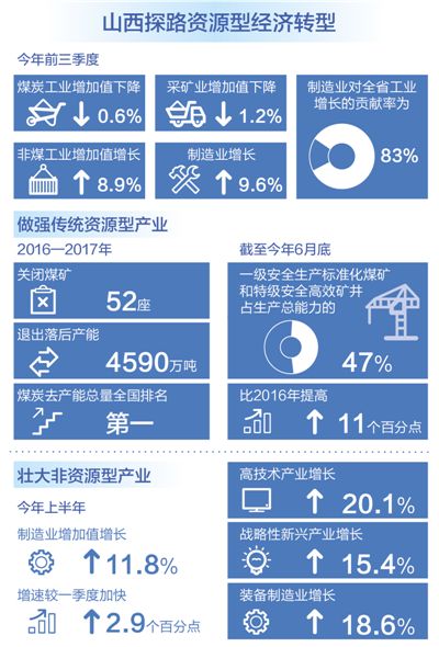 長(zhǎng)期以來(lái),在山西以煤為核心的資源型產(chǎn)業(yè)幾乎是“只手遮天”,不能培育、壯大非煤新產(chǎn)業(yè),為經(jīng)濟(jì)發(fā)展提供新動(dòng)力,資源型經(jīng)濟(jì)轉(zhuǎn)型就不會(huì)成功。