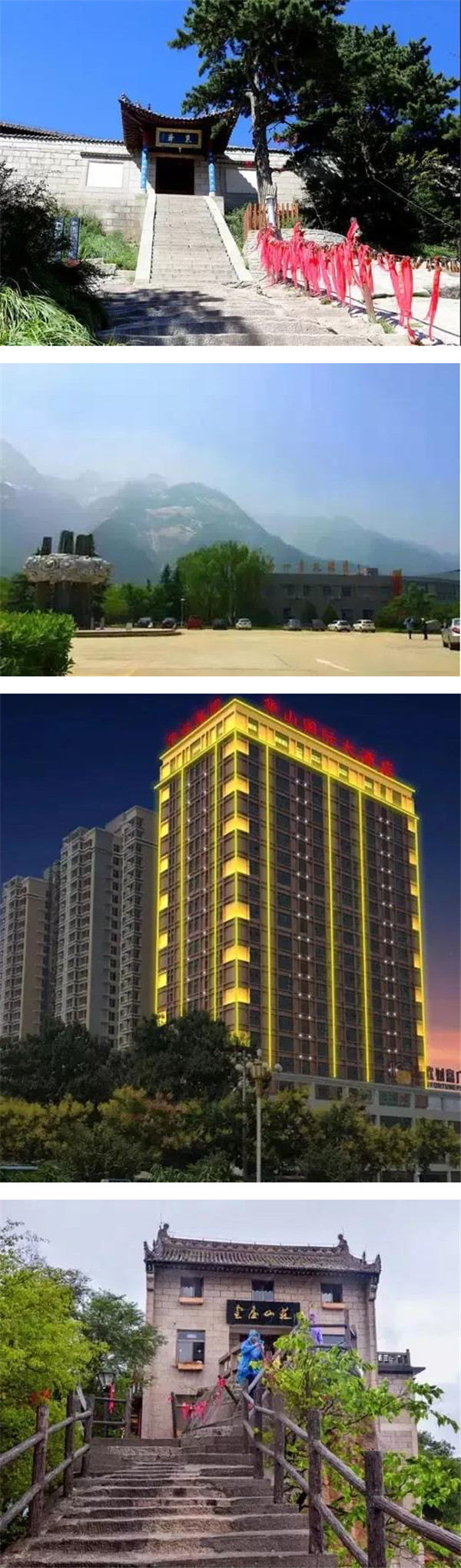 山上:北峰云臺山莊、五云峰飯店、金天山莊東峰飯店、金天山莊西峰飯店;