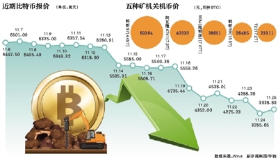 進入2018年,比特幣價格一直處于震蕩下行之中。近兩周下跌趨勢愈加明顯,Wind數(shù)據(jù)顯示,繼11月14日比特幣報價跌破6000美元后,19日跌破5000美元,24日跌破4000美元。