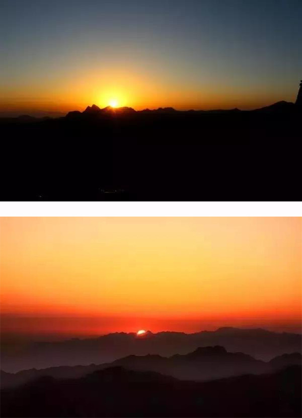 啊!青春的烈焰在升騰;新的生靈在震撼;歲月的車輪滾滾向前……該存在的難消失,該消失的存在難!天和地分了家,光明戰(zhàn)勝了黑暗。黑白交替,陰陽輪換!宇宙徹悟,氣象萬千。野草滾露,空氣新鮮;松濤簸香,山花爛漫;潮涌般的游客個個舒坦,猶如飽乳的嬰兒笑得甜甜。零晨三點,漆黑一團。熙熙攘攘的游客擁向山路彎彎,歡聲笑語、呼喚吶喊、手電筒的光柱密密麻麻。萬萬千千織成縷縷金練,宛如“金龍盤山”!朝陽峰上熱鬧非凡。不是拜佛求仙,卻耐心等待!企盼一個輝煌時刻,猶如新生命噴紅分娩。一飽華山日出的壯觀!