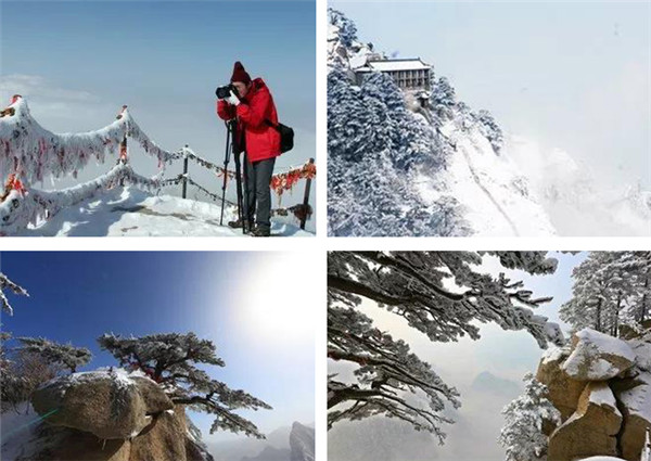奇險(xiǎn)天下第一山之美譽(yù)的西岳華山自古稱奇,而冬季的華山自然景觀則更為奇特,“雪海”、“雪松”、“冰掛”、“冰瀑”、“冰雕”等景觀,為華山的美增添了無窮的魅力,如果說夏季的華山如水彩般鮮艷秀美,那冬日的華山就如水墨般濃墨厚重了。
