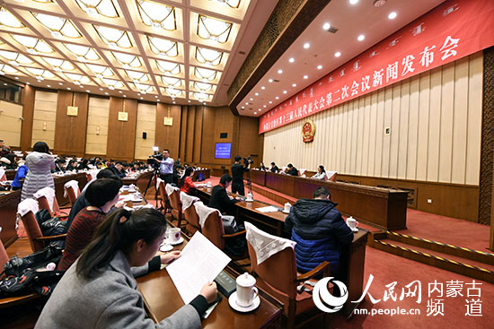 內(nèi)蒙古自治區(qū)十三屆人大二次會(huì)議新聞發(fā)布會(huì)現(xiàn)場(chǎng)。