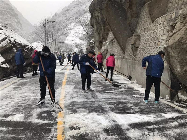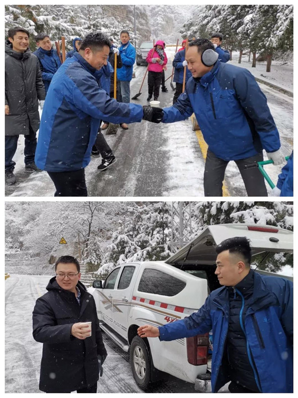 1月31日凌晨景區(qū)出現(xiàn)強降雪天氣,道路積雪嚴重影響行車安全。華旅集團第一時間多渠道發(fā)布景區(qū)推遲運營時間的信息,并向游客做好解釋工作,同時號召集團各部室、各單位迅速組織人員赴進山公路進行掃雪除冰,經過三個小時的全力清掃,東線進山公路積雪清理完畢,景區(qū)在短時間內恢復運營,西線索道進山公路及華山峪區(qū)域不斷加大清掃力度,盡力實現(xiàn)景區(qū)全線貫通。