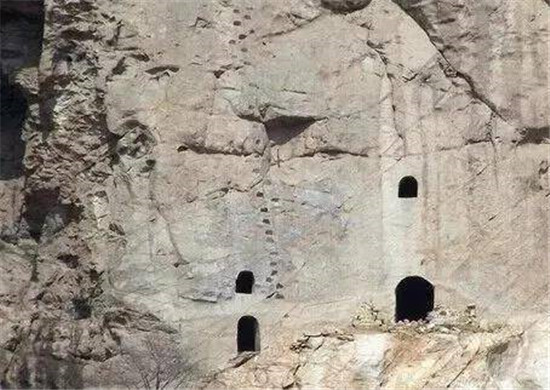 白雀寺北窟位于華陰市五方鄉(xiāng)仙峪村南秦嶺北支華山山脈。該石窟東隔仙峪與華山西峰相望,高出峪道約300米。洞窟開(kāi)鑿于山體的花崗巖質(zhì)壁面上,存有洞窟三眼。石窟中的原彩塑已無(wú)存,洞頂上刻有的圖案保存較好,專家根據(jù)建造特征分析,三眼石窟可能始鑿于唐代。
