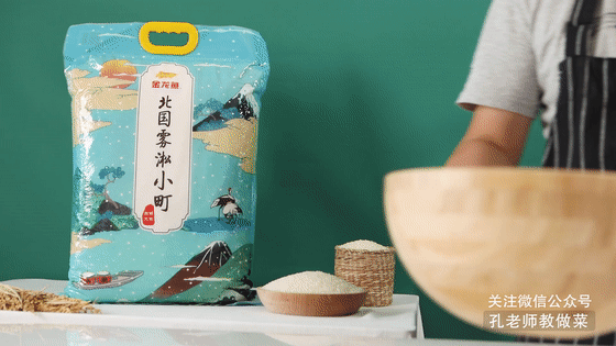 1.將金龍魚北國霧淞小町大米與糯米按照1:1的比例混合,倒入清水中。(這樣的比例口感好,也不至于太過粘糯,喜歡粘糯一點的可以按1:2的比例。)淘洗大米2-3次至水清,再加少許清水浸泡1小時,讓米粒吸飽水分。