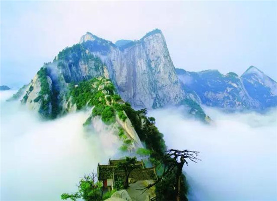 太華之山,削成而四方,其高五千仞,其廣十里。近看懸崖峭壁,奇險無比;遠望石峰林立,氣象森羅。山上的自然景觀世所罕見。
