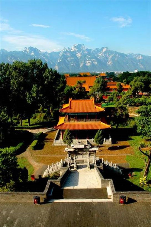 西岳廟是供奉西岳大帝華山神的廟宇,廟始建于漢武帝時(shí)代,后成為歷代帝王祭祀華山神的場(chǎng)所。西岳廟坐北朝南,廟門正對(duì)華山。在由北至南的中軸線上依次排列著灝靈門、五鳳樓、欞星門、金城門、灝靈殿、寢宮、御書樓、萬壽閣。整個(gè)建筑呈現(xiàn)前低后高的格局。西岳廟建筑相當(dāng)宏偉。五鳳樓建于高臺(tái)上,高達(dá)20多米,登樓望華山,五峰歷歷在目。正殿灝靈殿建筑為琉璃瓦單檐歇山頂,坐落于寬廣的“凸”字型月臺(tái)之上,面寬7間,進(jìn)深5間,周圍有回廊,氣勢(shì)宏偉,歷代帝王祭祀華山多住于此。殿內(nèi)懸掛有康熙、道光、慈禧所題“金天昭端”、“仙云”等匾額。整個(gè)院落林木繁茂,山石嶙峋,饒有園林之趣。