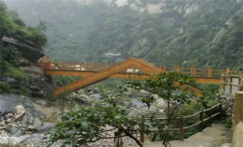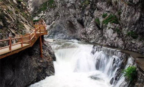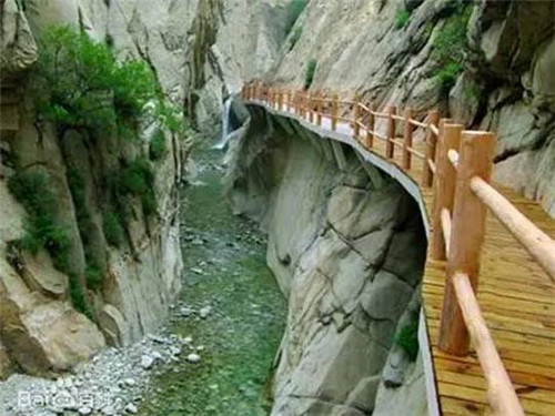第二游:仙峪(仙峪,又名車箱谷,在華山峪西,與華山峪僅一嶺之隔,傳說古時(shí)黃初平、黃初起弟兄在此牧羊成仙,因而得名。仙峪深五十余里,峪道窄狹清幽,山路崎嶇蜿蜒,河流湍急,山石險(xiǎn)峻,多處路段鑿崖,加棧凌空通過。進(jìn)峪五里處,有斜嶺橫阻,令人有谷盡路絕之感,然越嶺橫度,又平添柳暗花明的情趣)。