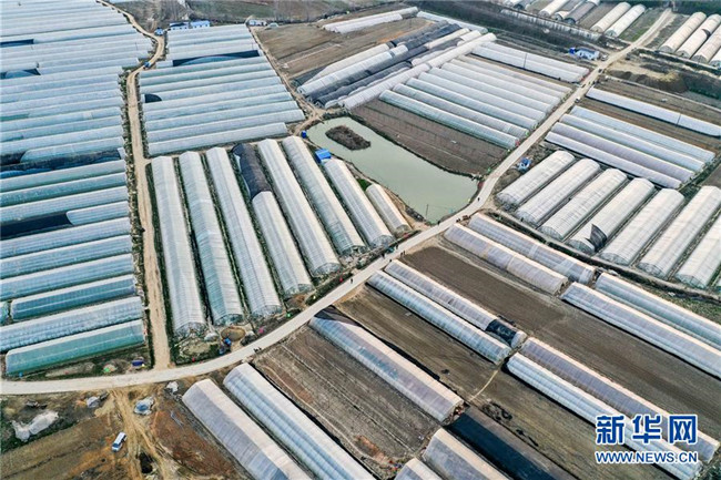 3月11日無人機(jī)拍攝的明光市管店鎮(zhèn)甜葉菊育苗扶貧基地一角。 新華社記者 曹力 攝