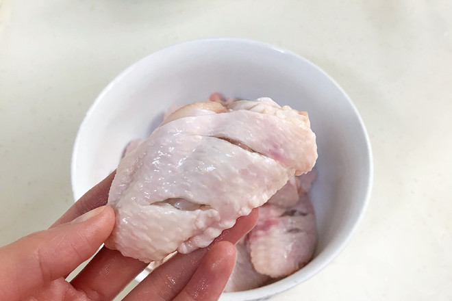 1.雞翅中浸泡20分鐘去去血水,沖洗干凈,瀝干水分。