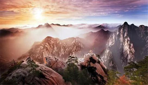 華山可謂渾然一塊的石頭,《水經(jīng)注渭水》中記載“遠(yuǎn)而望之,又若華狀”。因?yàn)檫h(yuǎn)處看去像花一樣的山,人們叫它“花山”,“華”與“花”在古代為通用字,所以又稱為“華山”。造化的神功將這壁立千尺的骨骼與華中君子的外形不著痕跡地融為了一體。