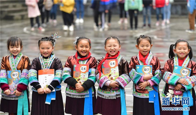 進(jìn)入二十一世紀(jì),隨著我國義務(wù)教育的普及和農(nóng)村義務(wù)教育學(xué)生營養(yǎng)改善計(jì)劃等一系列教育惠民政策的落實(shí),當(dāng)?shù)攸h委政府大力改善學(xué)校辦學(xué)條件,完善教育精準(zhǔn)資助體系,保障學(xué)生特別是適齡女童能夠充分接受良好的教育。目前,適齡女童的入學(xué)率已經(jīng)超過99%,“狗不耕田,女不讀書”的傳統(tǒng)觀念得到徹底改變,越來越多的苗山適齡女童得以通過接受良好的教育實(shí)現(xiàn)自己的夢想。新華社記者 黃孝邦 攝