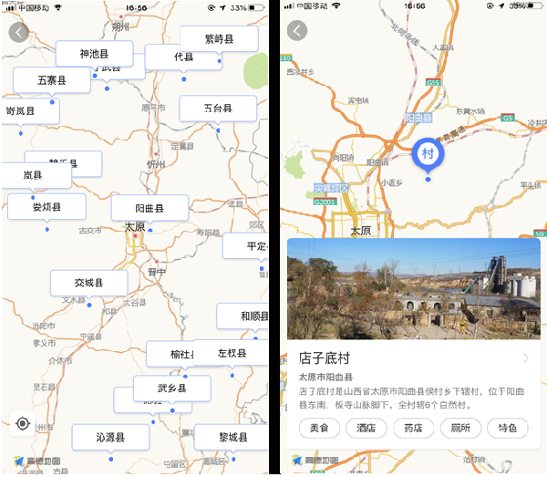 “山西省旅游扶貧地圖”首批上線100個旅游扶貧示范村,是山西省文化和旅游廳與高德地圖合作的第一步。隨后,第二批示范村(200個)也將上線,實(shí)現(xiàn)示范村全覆蓋,更好地助力旅游扶貧,幫助貧困群眾增收脫貧。