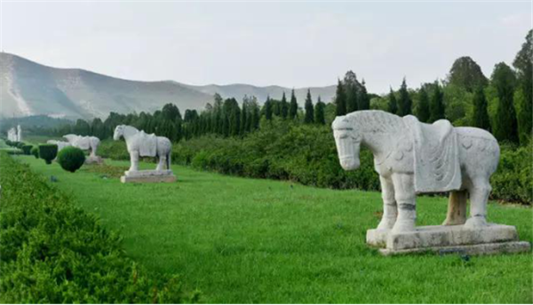 橋陵的石馬也有著自己的特色,膘肥體壯、披戴華麗,與昭陵六駿形成鮮明對比,昭陵六駿四蹄生風(fēng)、英姿颯爽,為大唐的江山立下了汗馬功勞。遺憾的是這些馬大部分都沒有馬嘴了,相傳石馬成精,偷吃當(dāng)?shù)乩习傩盏拿缀兔妫蝗藗儼疡R嘴給敲掉了。但奇怪的是東面有幾匹馬的馬嘴保存特好,仔細(xì)去看,會發(fā)現(xiàn)原來馬嘴上面套著馬籠子。石馬還有一個(gè)神氣的特點(diǎn),用手輕拍,會發(fā)出特別清脆的金屬聲音,傳說,會給人們帶來好的運(yùn)氣,寄托著人們對美好事物的向往。