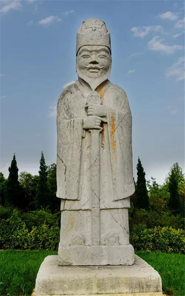 橋陵的石人身高都在4米左右,一個(gè)個(gè)面帶微笑,表情豐富,顯得氣度不凡,雍容華貴,反映了盛唐社會的和諧安定,經(jīng)濟(jì)上的欣欣向榮。雙眼皮、美人痣、波浪形的胡子讓你驚嘆雕刻手法的細(xì)膩傳神,尤其是1300年后連人的指甲蓋你都看的是一清二楚。