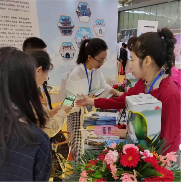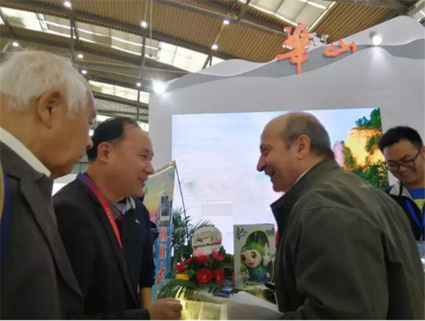 會上,華山管委會常務(wù)副主任郭文平、華山管委會黨工委委員張永江、華山管委會文物旅游處副處長王領(lǐng)娣一行來到展臺視察工作,并在現(xiàn)場與市民互動,郭文平主動當(dāng)起了華山講解員,為前來咨詢的市民答疑解惑,宣傳華山,贈送禮物。