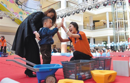 4月2日,早教老師與自閉癥患兒家庭協(xié)作完成互動(dòng)游戲。當(dāng)日是第十二個(gè)“世界自閉癥關(guān)注日”,圍繞今年的主題“消除誤區(qū),倡導(dǎo)全納”,銀川市文明辦、殘聯(lián)等單位聯(lián)合開展“藍(lán)色行動(dòng),愛不孤單”志愿服務(wù),通過(guò)宣講、捐贈(zèng)、游戲等方式,倡導(dǎo)人們尊重、愛護(hù)自閉癥患兒,助其融入社會(huì)大家庭?!∮浾?白茹 攝