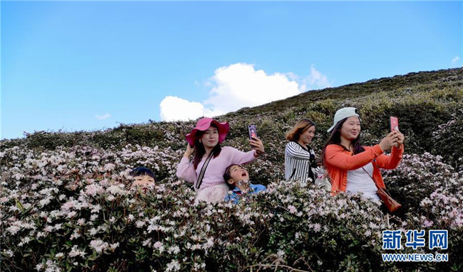 4月7日,游客在貴州省畢節(jié)市百里杜鵑金坡景區(qū)游覽。清明時(shí)節(jié),人們外出旅游,踏青賞花,感受春天的美好。 新華社發(fā)(韓賢普 攝)