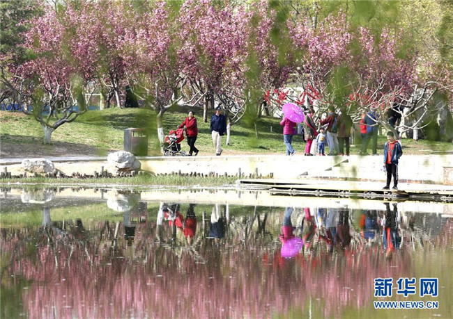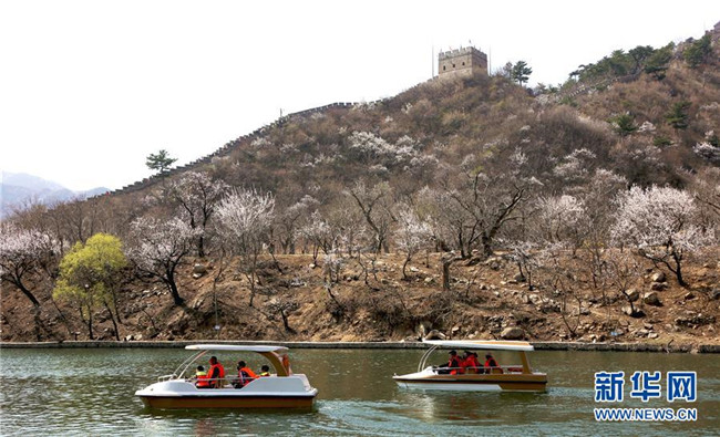 4月7日,游客在北京懷柔水長(zhǎng)城旅游景區(qū)踏青賞花。清明時(shí)節(jié),人們外出旅游,踏青賞花,感受春天的美好。 新華社發(fā)(卜向東 攝)