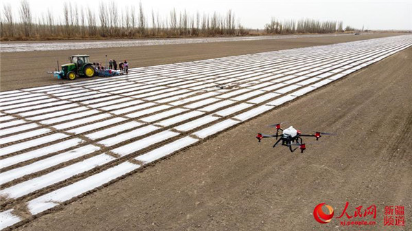春分已過,新疆棉花主要產(chǎn)區(qū)陸續(xù)開始春播作業(yè),到處是一片忙碌的景象。與往年相比,今年新疆尉犁縣95萬畝棉田實行了100%耕地機(jī)采棉模式,并依托“極飛”農(nóng)業(yè)植保無人機(jī)、聯(lián)合整地機(jī)、GPS智能導(dǎo)航播種機(jī)等智慧農(nóng)機(jī),實現(xiàn)無縫對接聯(lián)合春播作業(yè),在提升棉田春播效率的同時,推進(jìn)精準(zhǔn)化、智能化田間作業(yè),為廣闊的棉田插上現(xiàn)代化騰飛的“翅膀”。(李飛)