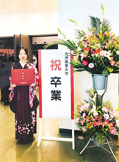 日本的畢業(yè)式還需要穿著正式服裝。從日本九州產(chǎn)業(yè)大學(xué)畢業(yè)的曲銘碩姑娘,選擇了穿上和服參加畢業(yè)式,拍一張具有日本特色的畢業(yè)照。在日本,畢業(yè)季時(shí)可以租借的和服十分“緊俏”。曲銘碩說:“我一想,人生中畢業(yè)的歡慶時(shí)刻十分珍貴,那就穿上最正式的服裝吧。”于是曲銘碩便改變了原本穿西裝的想法,動(dòng)了很大的心思四處尋找,終于在畢業(yè)式前找到了一套合適的和服。
