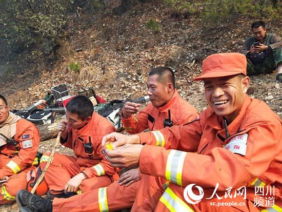 4月8日上午6時(shí),鹽邊大隊(duì)指戰(zhàn)員奉命趕到東線(xiàn)山梁處置火情。下午兩點(diǎn)多,簡(jiǎn)單吃了幾口干糧的指戰(zhàn)員暫時(shí)進(jìn)行休整。