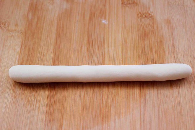 11.取一份面團(tuán)揉勻后,先搓成長(zhǎng)條。