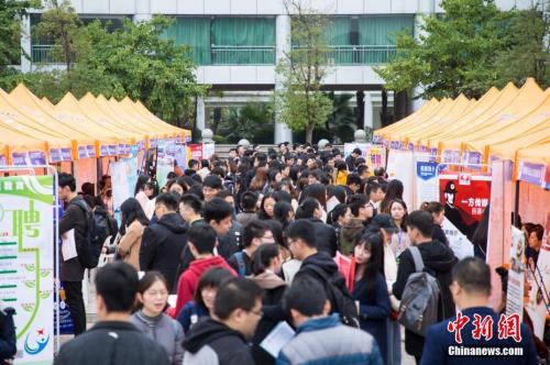 資料圖:沈陽師范大學(xué)2019屆畢業(yè)生春季大型就業(yè)雙選會(huì)。中新社記者 于海洋 攝