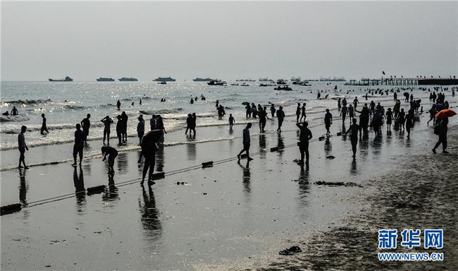近日,隨著氣溫回升,眾多游客來到廣西北海銀灘旅游,享受碧海藍(lán)天帶來的樂趣。 新華社記者 張愛林 攝