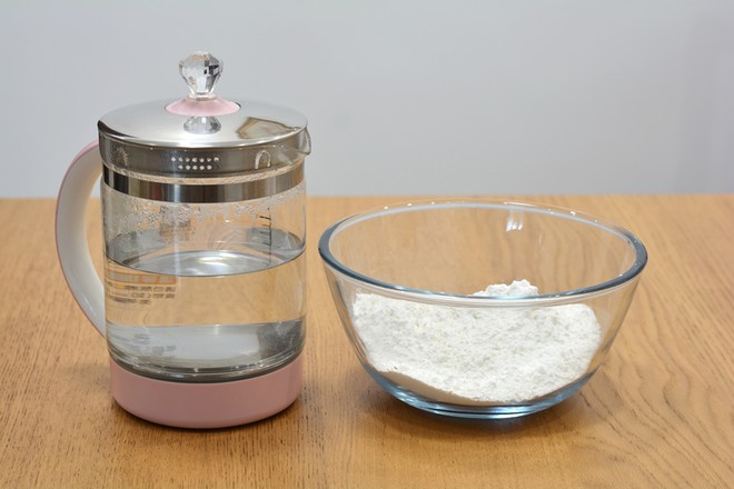 1.中筋面粉和開(kāi)水準(zhǔn)備好,開(kāi)水晾幾分鐘,溫度在80-90度最好;