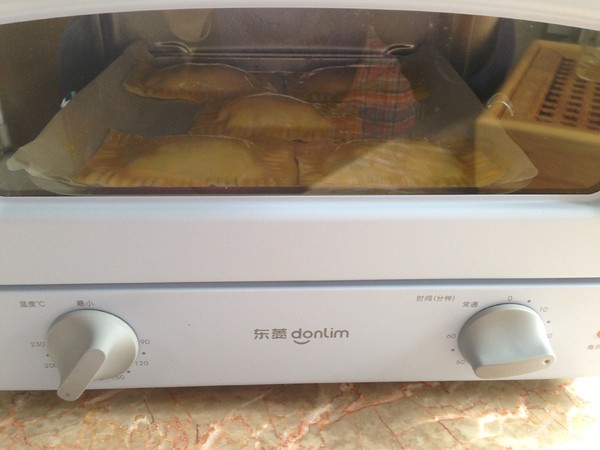10.烤盤鋪油紙放入蘋果派,表面刷蛋黃液