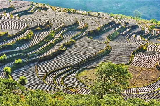 近日,南澗彝族自治縣南澗鎮(zhèn)白云村的烤煙大田移栽基本完成,一片片梯田構(gòu)成了一幅美麗的畫卷。南澗縣今年將進(jìn)一步加大科技種植、科技管理力度,力爭(zhēng)實(shí)現(xiàn)烤煙生產(chǎn)提質(zhì)增效。本報(bào)通訊員 適志宏 攝