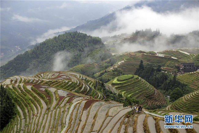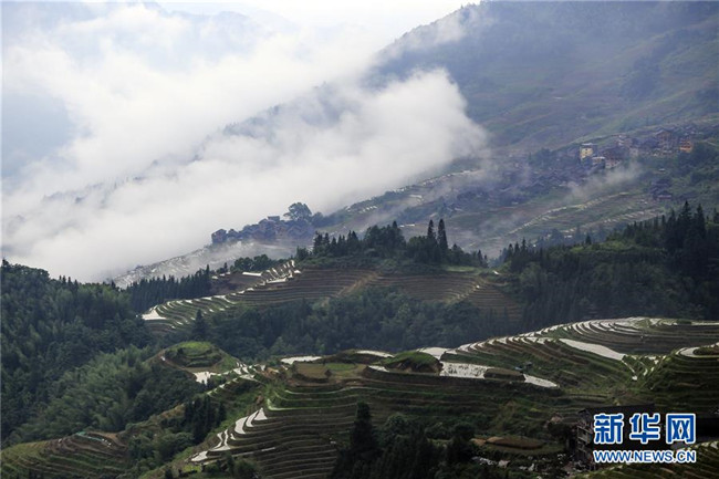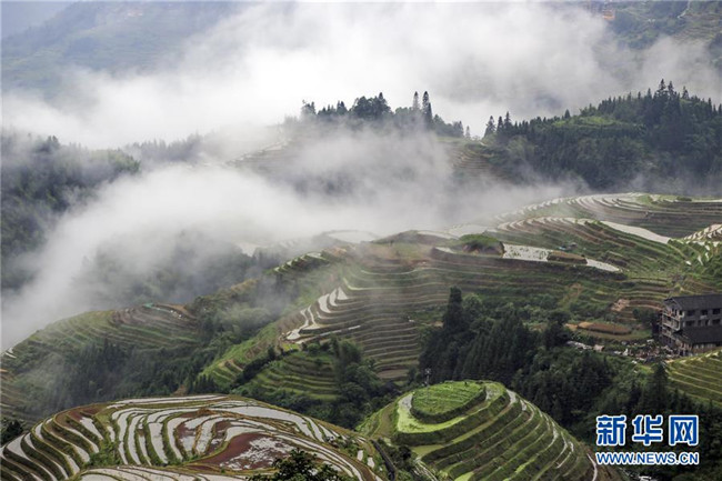 雨后的廣西龍勝各族自治縣龍脊梯田云霧升騰,村寨、梯田在云海中若隱若現,美如仙境。 新華社發(fā)(劉滿倉 攝)
