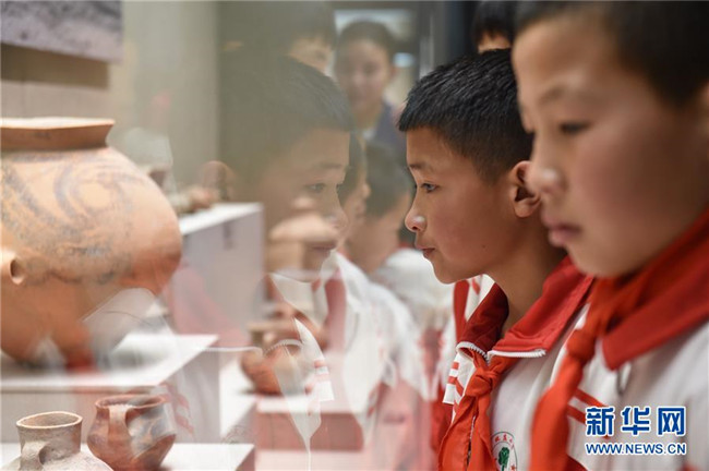 5月31日,學(xué)生們?cè)趯幭墓淘┪镳^參觀。新華社記者 唐亞蒙 攝