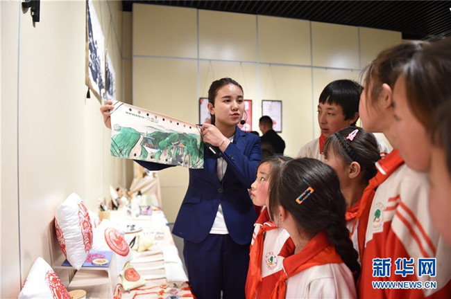 5月31日,在寧夏固原博物館,講解員為學(xué)生們介紹創(chuàng)意產(chǎn)品。新華社記者 唐亞蒙 攝