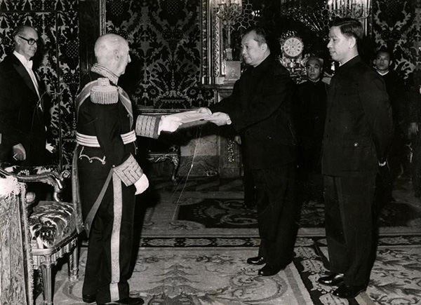 當(dāng)時(shí)的西班牙正處在弗朗哥統(tǒng)治時(shí)期。當(dāng)共產(chǎn)黨領(lǐng)導(dǎo)的中國外交官來到了西班牙,當(dāng)中國在西方的封鎖圈中與西班牙建交,當(dāng)五星紅旗在馬德里城頭升起的時(shí)候,整個(gè)西班牙、整個(gè)歐洲、整個(gè)世界都為之震驚了。