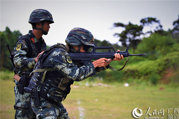 特戰(zhàn)隊(duì)員在進(jìn)行步槍記憶指向射擊