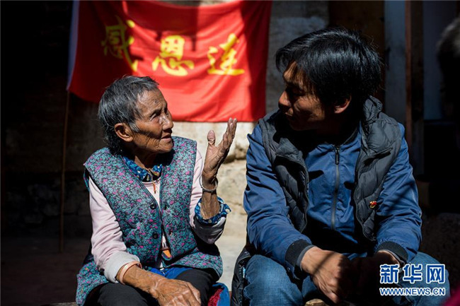 在云南香格里拉市五境鄉(xiāng),格茸(右)和達(dá)瓦卓瑪老人聊天(3月13日攝)。新華社記者 胡超 攝