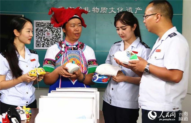 6月18日,恰逢硯山縣稅務(wù)局上門服務(wù),王陸芬向稅務(wù)人員介紹產(chǎn)品。攝影:陸安恒