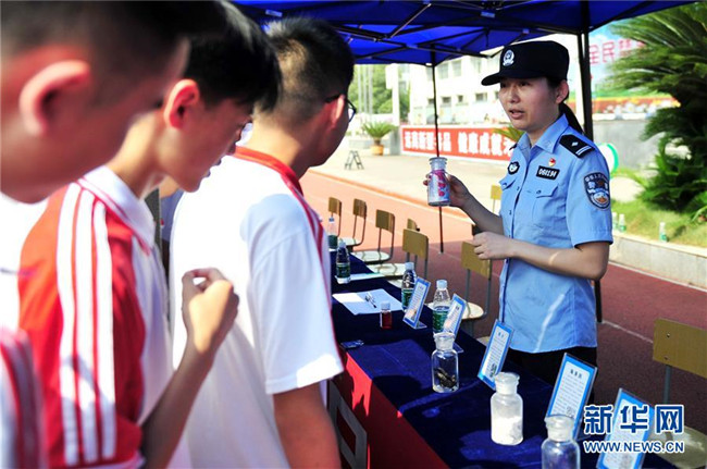 6月26日,民警向湖北省宜昌市夷陵區(qū)東湖高中學生宣講各類毒品的危害。新華社發(fā)(張國榮攝)