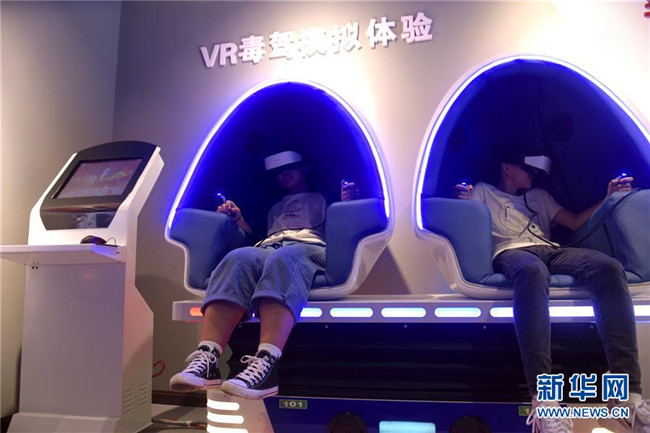 6月26日,在湖北省宣恩縣未成年人法治教育和禁毒警示教育基地,學生通過虛擬現(xiàn)實設備,了解吸毒駕駛的危害。新華社發(fā)(王俊攝)